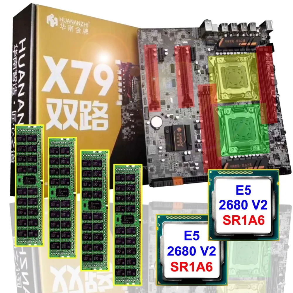. Günstige Kaufen Ausgezeichnete motherboard combo Heißer HUANAN ZHI dual CPU X79 motherboard mit CPU Intel Xeon E5 2680 V2 SR1A6 RAM 64G (4*16G) REG ECC Preise Online.