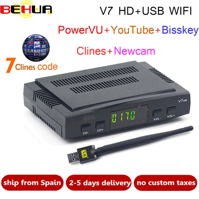 . Kaufen Billig Freesat V7 V7S HD Satelliten receiver mit USB WIFI 1 Jahr Europa Spanien 7 Clines Server Gerät DVB S2 Satellite Empfänger decoder Preise Online.