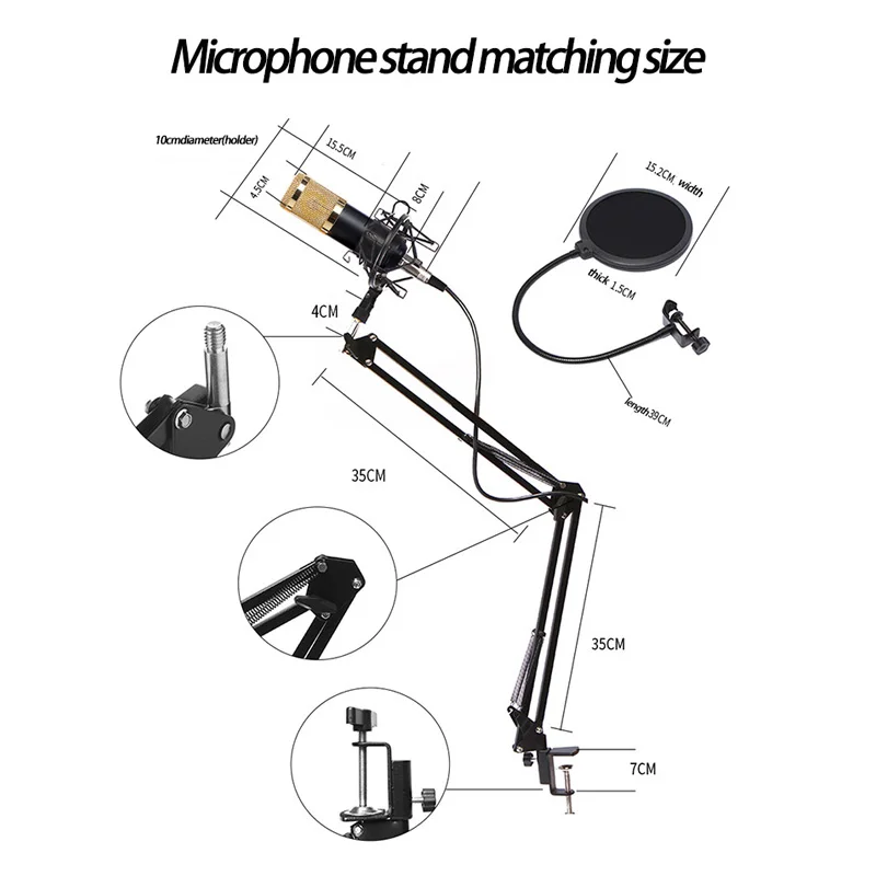 . Kaufen Günstig BM800 Professionelle Kondensator Mikrofon Studio Sound Aufnahme bm800 Stand Pop Filter Rrecording karaoke Mic Phantom power Preise Online.