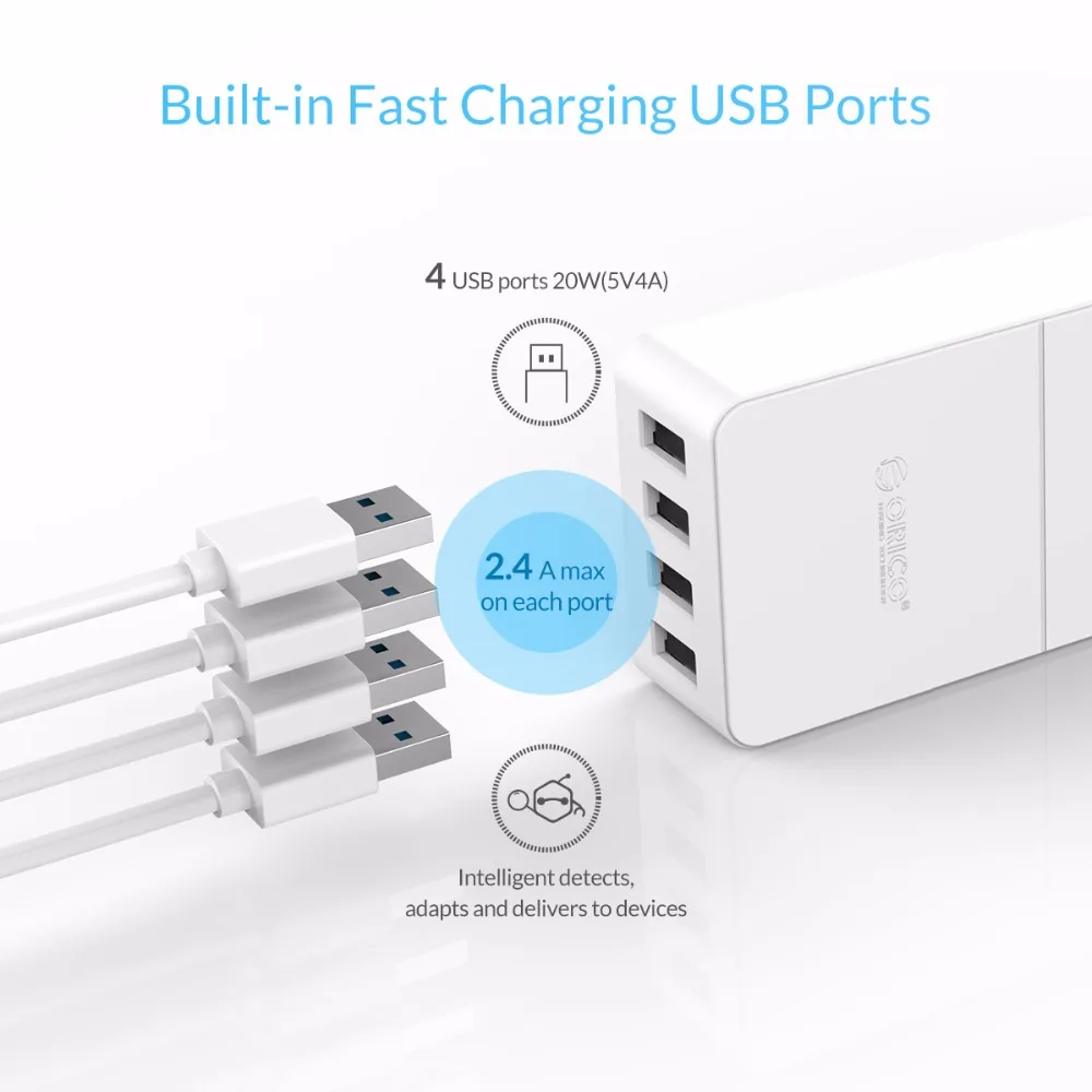 . Günstige Kaufen ORICO 4 USB Power Streifen Steckdose mit 3AC 2AC Outlet UNS Stecker Surge Protector Buchse Smart Elektronische Streifen Max 1250 watt Preise Online.