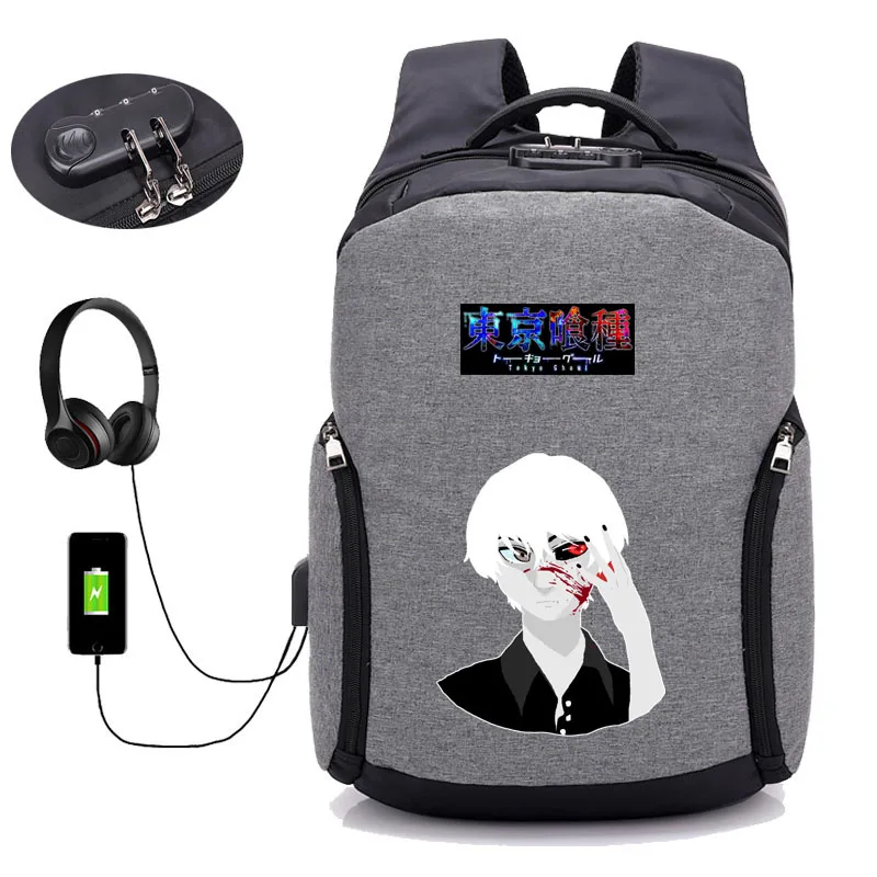Billige Kaufen Anime Tokyo ghouls Rucksäcke USB Lade Rucksack Jugendliche schüler buch tasche Laptop Rucksack Anti diebstahl Taschen 12 stil Preise Online.