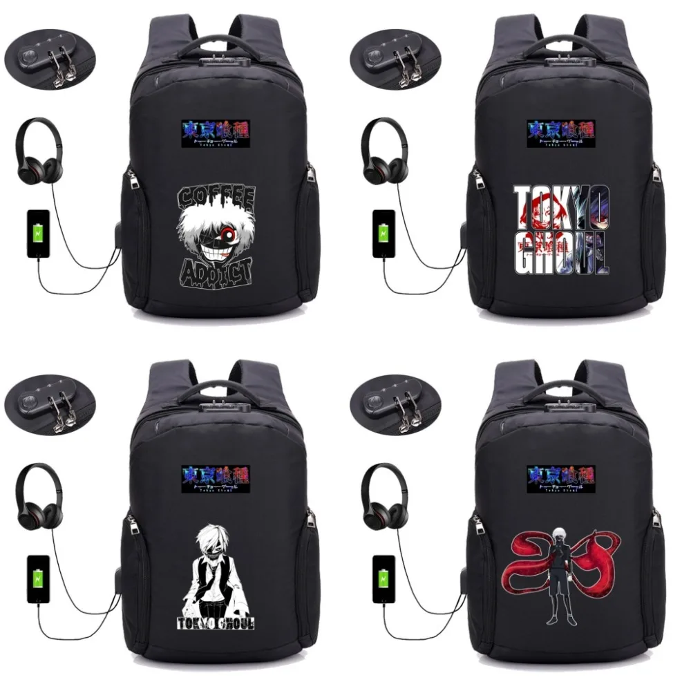 Billige Kaufen Anime Tokyo ghouls Rucksäcke USB Lade Rucksack Jugendliche schüler buch tasche Laptop Rucksack Anti diebstahl Taschen 12 stil Preise Online