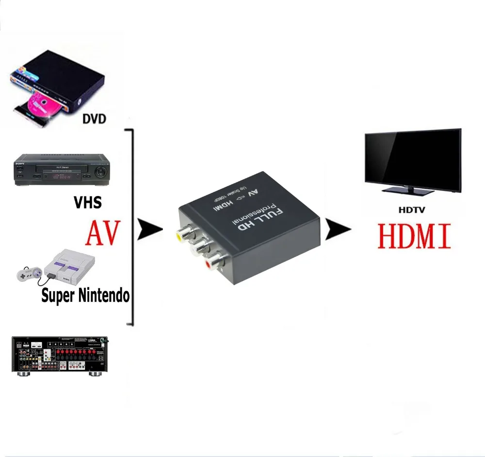 . Günstige Kaufen Aikexin AV zu HDMI Konverter Composite 3RCA CVBS zu HDMI Converter Box AV2HDMI Adapter Unterstützung 720 p 1080 p für TV PC PS3 Preise Online.