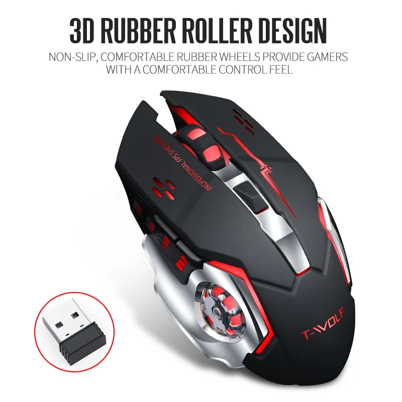 . Kaufen Günstig T WOLF Q13 Wiederaufladbare Drahtlose Maus Stille Ergonomische Gaming Mäuse 6 Tasten RGB Hintergrundbeleuchtung 2400 dpi für Laptop Computer Pro Gamer Preise Online.