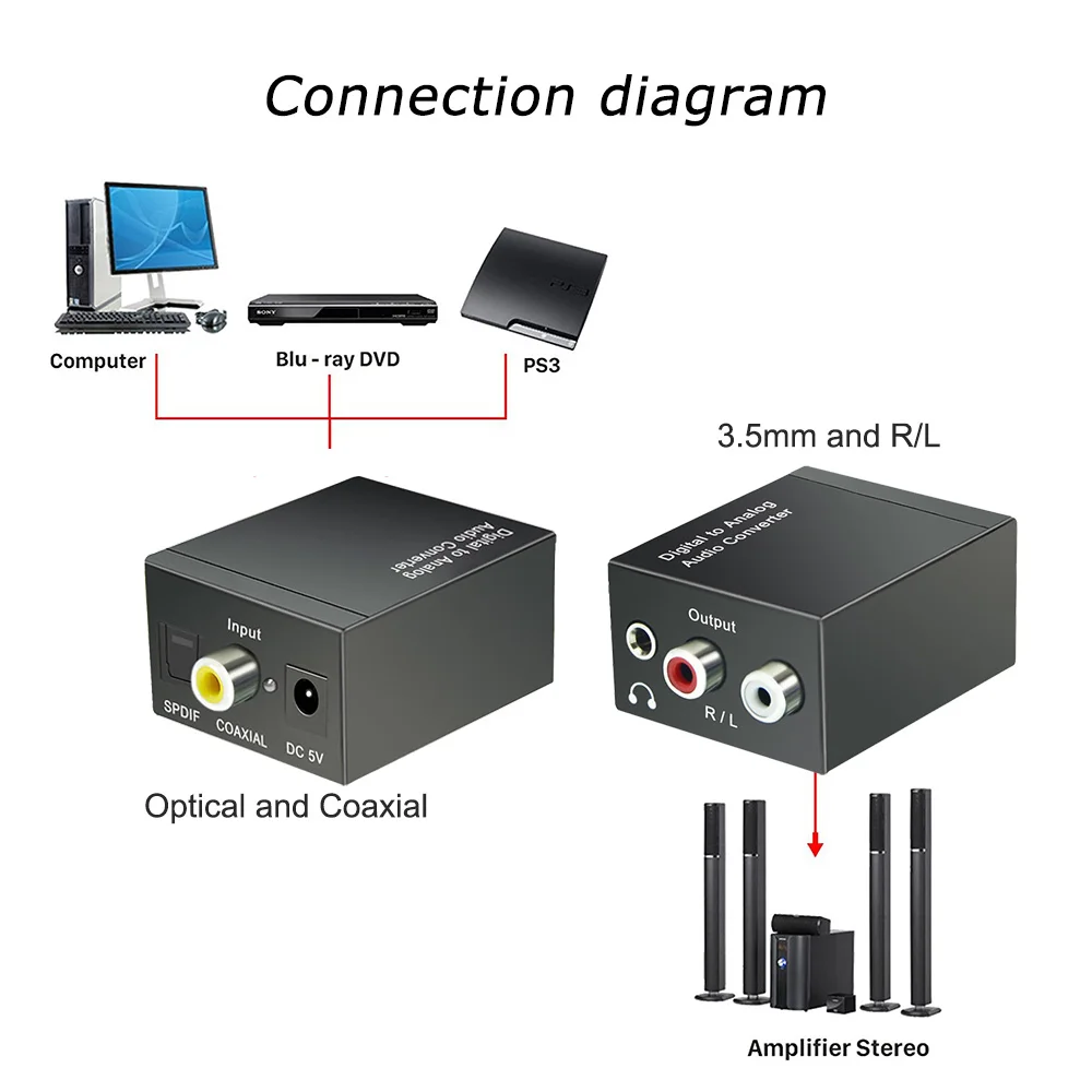 Günstige Kaufen Aikexin DAC Digital zu Analog Audio Converter Optical Koaxial Toslink zu RCA R L 3,5mm Jack Audio Adapter mit optische Kabel Preise Online.