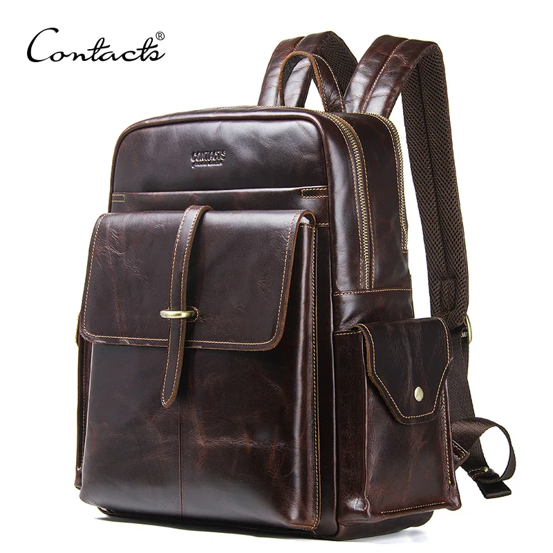 Kaufen Billig CONTACT S Echtem Leder herren Rucksack Für 13,3 Laptop Vintage Taschen Crazy Horse Leder Männlichen Daypack Fashion Reisetasche mann Preise Online.