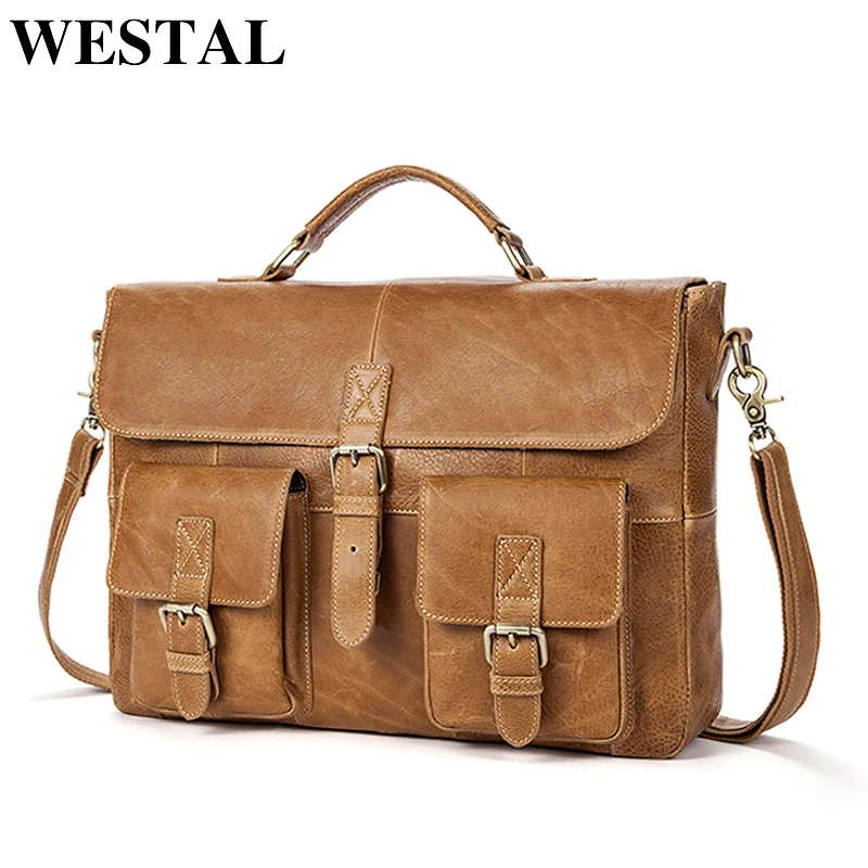 . Kaufen Billig WESTAL Business Männer Aktentaschen Aus Echtem Leder Handtaschen Umhängetasche Männer Leder Laptop Tasche Männlichen Aktentaschen büro taschen für mann Preise Online.