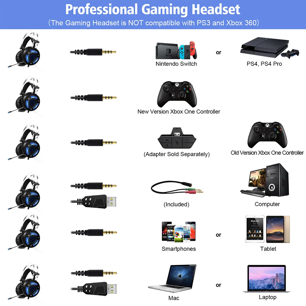 . Kaufen Billig ALWUP 6 Gaming headset für PS4 Xbox one mit mikrofon Gaming Kopfhörer für computer PC spiele mit splitter 7 farben LED licht Preise Online.