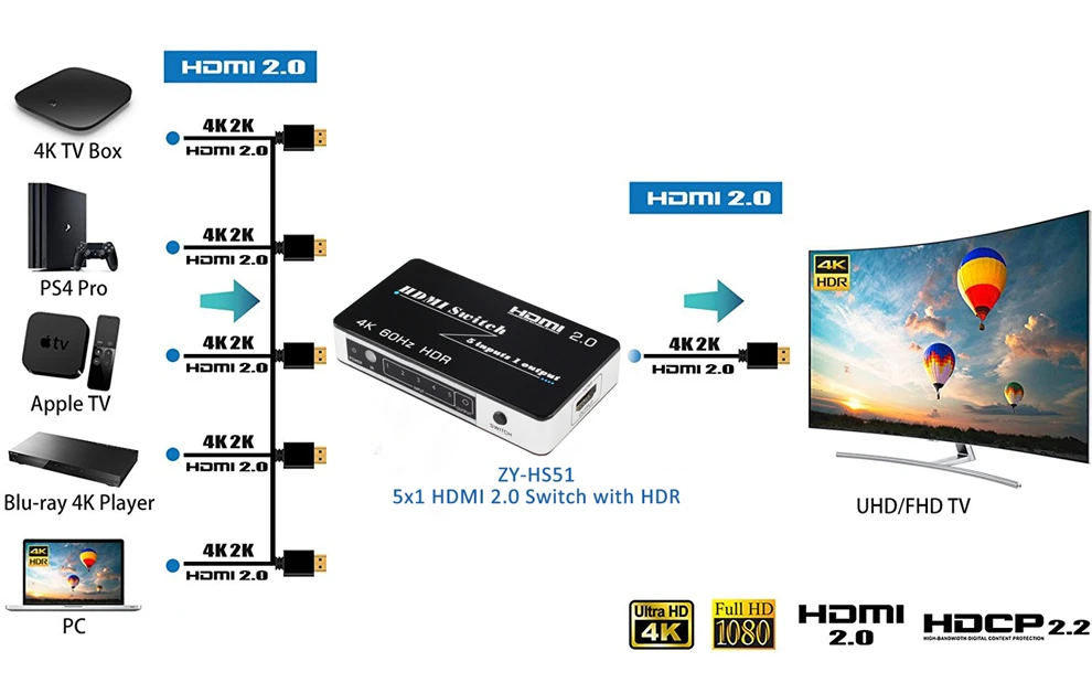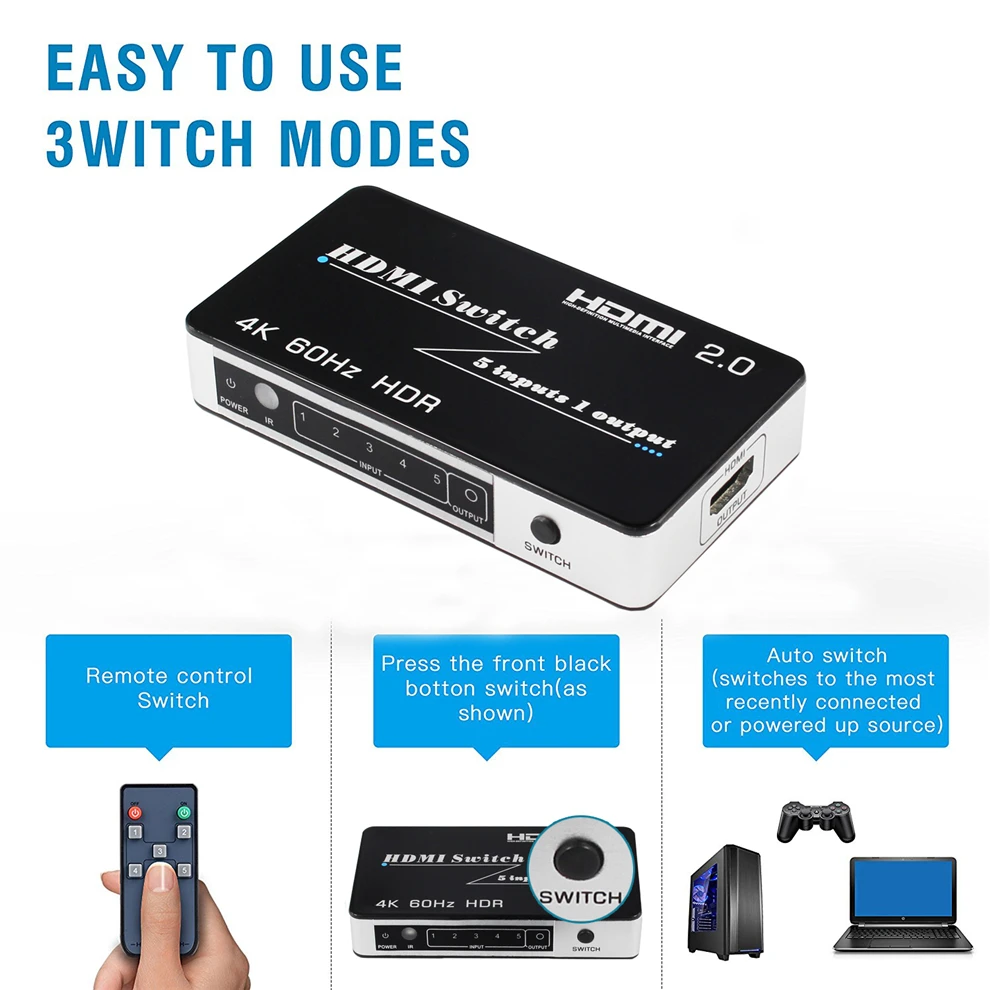 Kaufen Günstig Mini HDMI 2,0 Schalter HDR HDCP 2,2 3x1 5x1 HDMI Switch 2,0 4 karat HDMI Schalter HUB Box 3 5 Port HDMI Switch Switcher 4 karat für PS4 Pro Preise Online