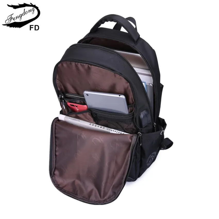 Billige Kaufen FengDong schule taschen für jungen schwarz wasserdicht laptop rucksack für männer gepäck reisetaschen anti diebstahl rucksack usb tasche schul Preise Online.