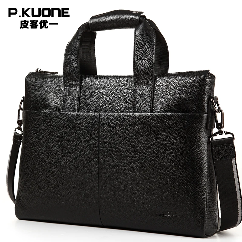 Kaufen Günstig P. KUONE Echtem Leder Berühmte Marke 14 Zoll Laptop Tote Geschäfts männer Schulter Tasche Umhängetasche Männlichen Rind mode Handtasche Preise Online.