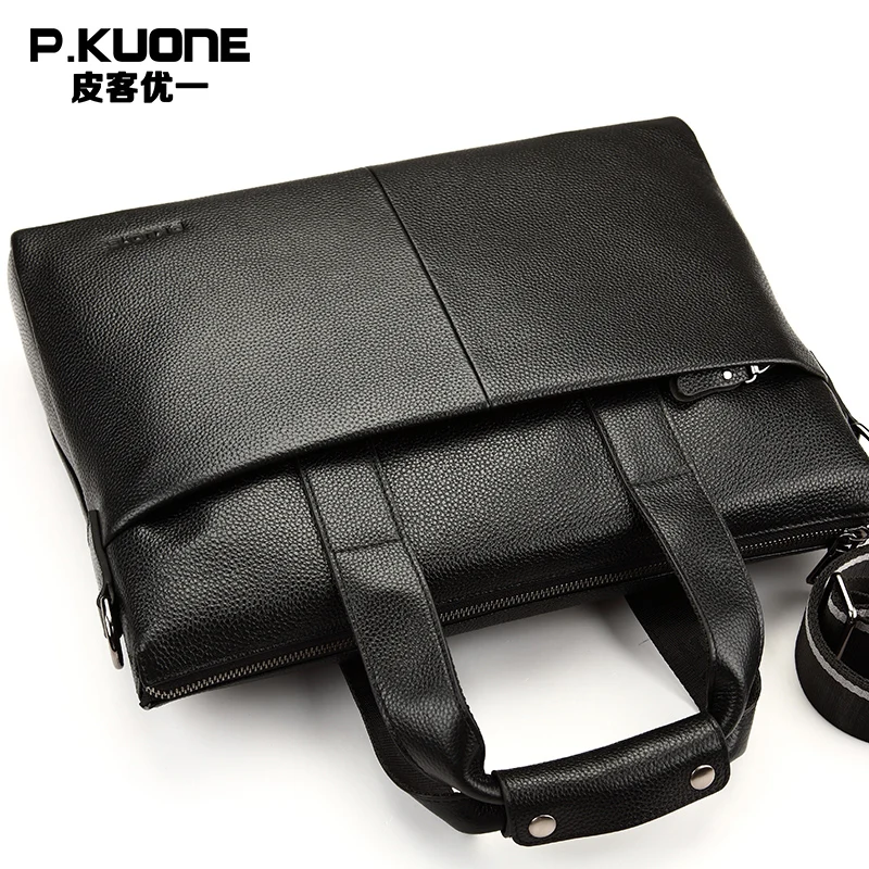 Kaufen Günstig P. KUONE Echtem Leder Berühmte Marke 14 Zoll Laptop Tote Geschäfts männer Schulter Tasche Umhängetasche Männlichen Rind mode Handtasche Preise Online