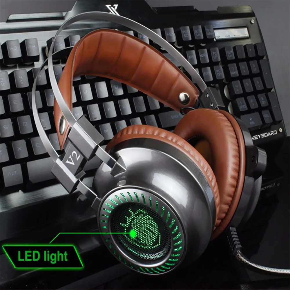 Günstige Kaufen Neueste Stereo V2 Kopfhörer Gaming Headset gamer LED Licht Hallo fi Kopfhörer MP3 mit mikrofon für computer PC fone de ouvido Preise Online.