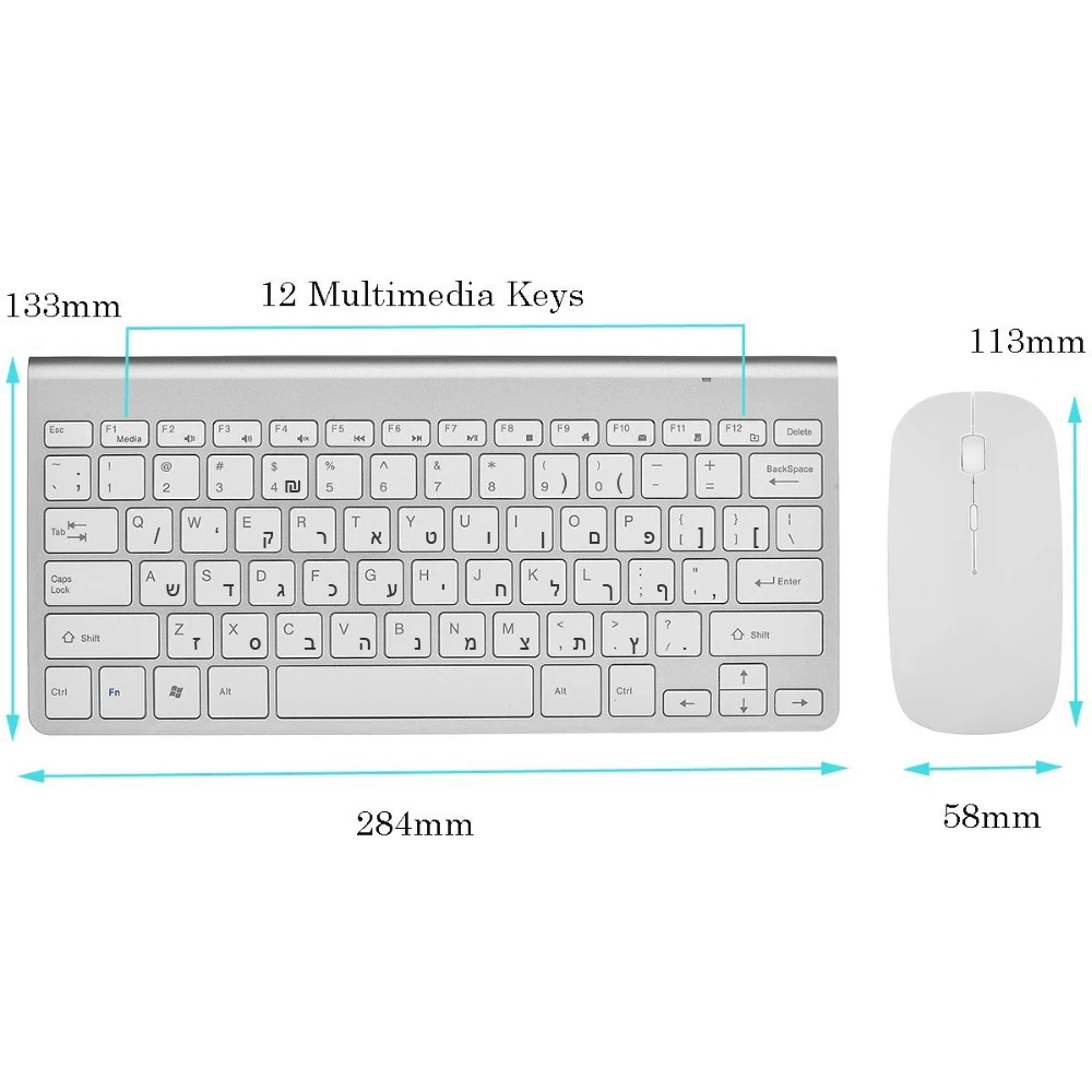 Kaufen Billig Ultradünne 2,4G Hebräisch Drahtlose Tastatur Maus Combo DPI 1200 Drahtlose maus und Mini adapter für Mac Win XP 7 10 Android Tv Box Preise Online