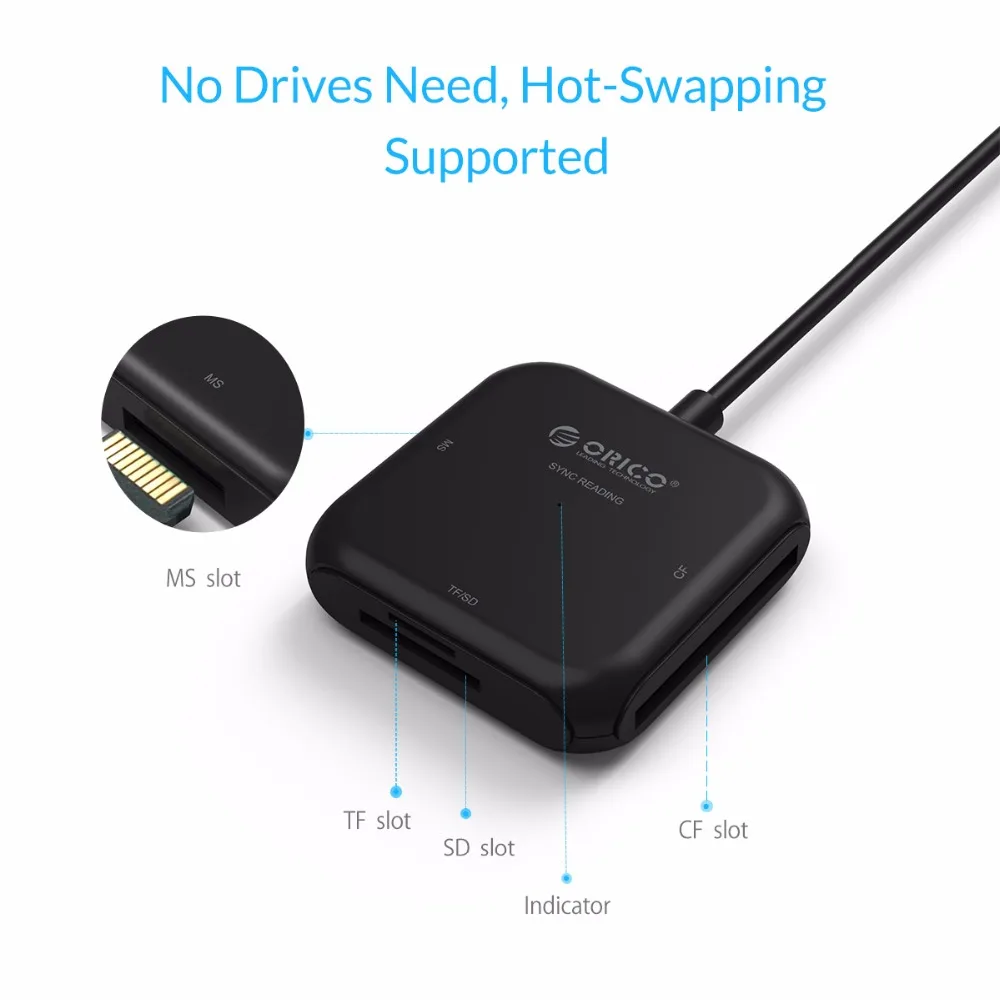Günstige Kaufen ORICO 4 in 1 USB3.0 Karte Speicher Reader Micro Erweiterung Sockel Kartenleser für TF SD MS CF Adapter Super Speed für Computer Telefon Preise Online.