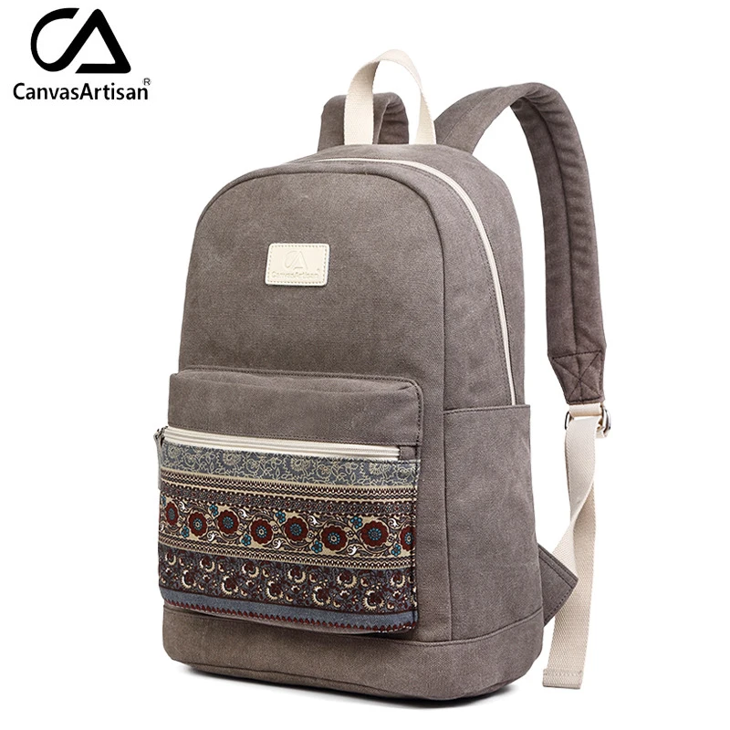 . Günstige Kaufen Canvasartisan Marke Neue Leinwand Rucksack Tasche für Frauen Vintage Stilvolle Beiläufige Laptop Reise Rucksäcke 2 Größe 13 zoll 15 zoll Preise Online.