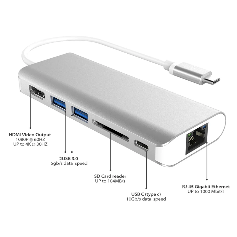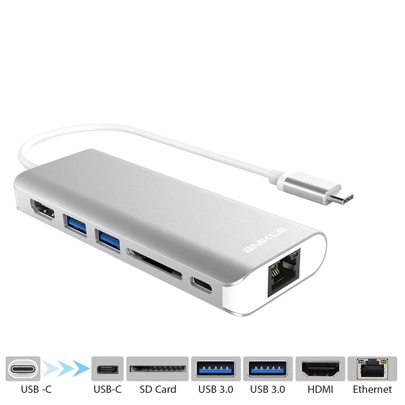 Kaufen Günstig Amkle 6 in 1 USB 3.0 HUB USB 3.1 Typ C zu HDMI USB 3.0 RJ45 SD TF typ C Adapter Konverter Für Macbook Pro Google Chromebook Preise Online.