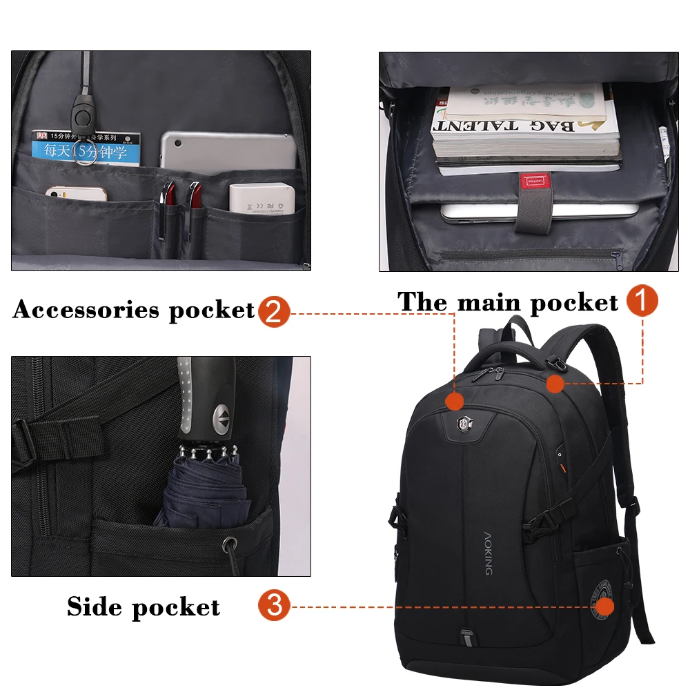 . Günstige Kaufen Aoking Mode Männer Rucksack Wasserdichte Reisetaschen herren Polyester Komfort Drei Größen Rucksäcke Computer Laptop Packsack Preise Online.