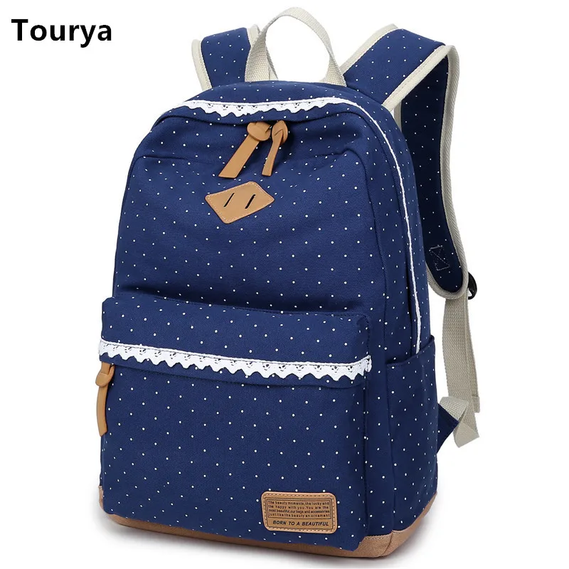 . Kaufen Günstig Tourya Vintage Leinwand Frauen Rucksack Nette Schule Taschen Für Jugendliche Mädchen Dot Druck Weibliche Schul Laptop Bagpack Mochila Preise Online.
