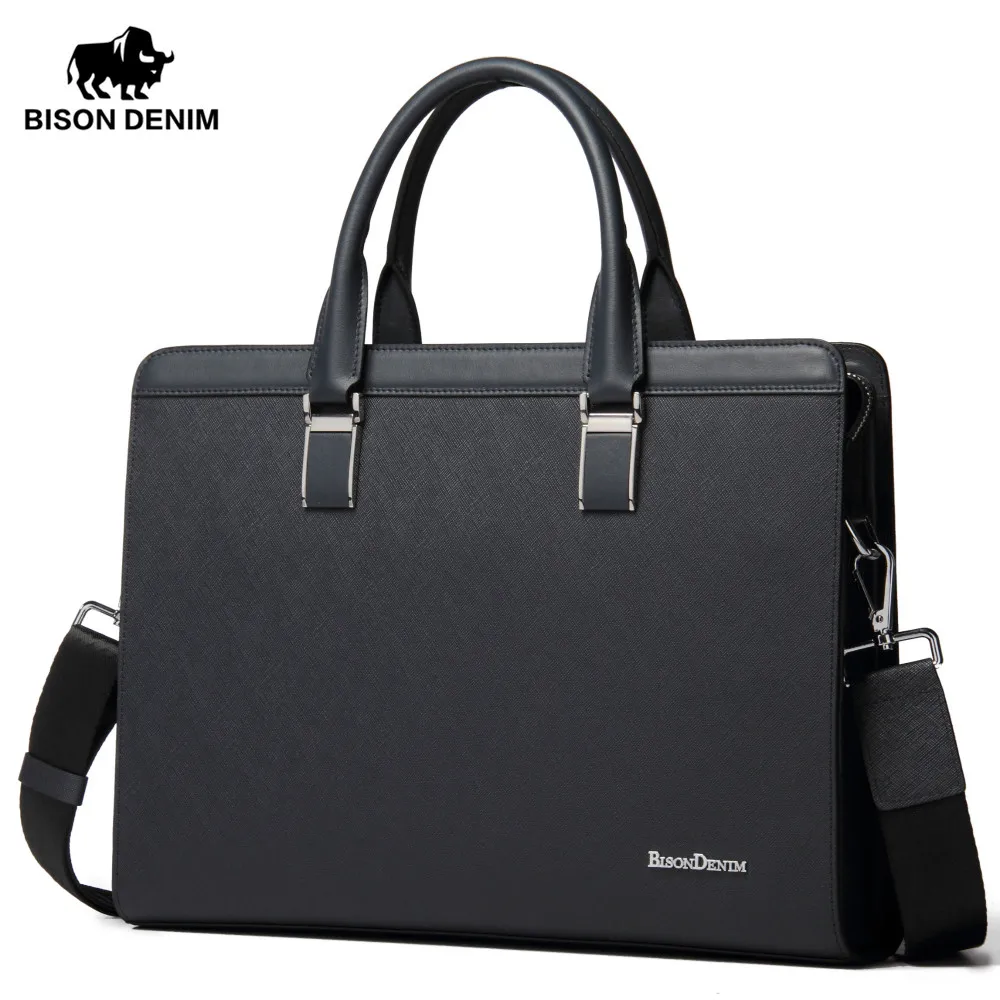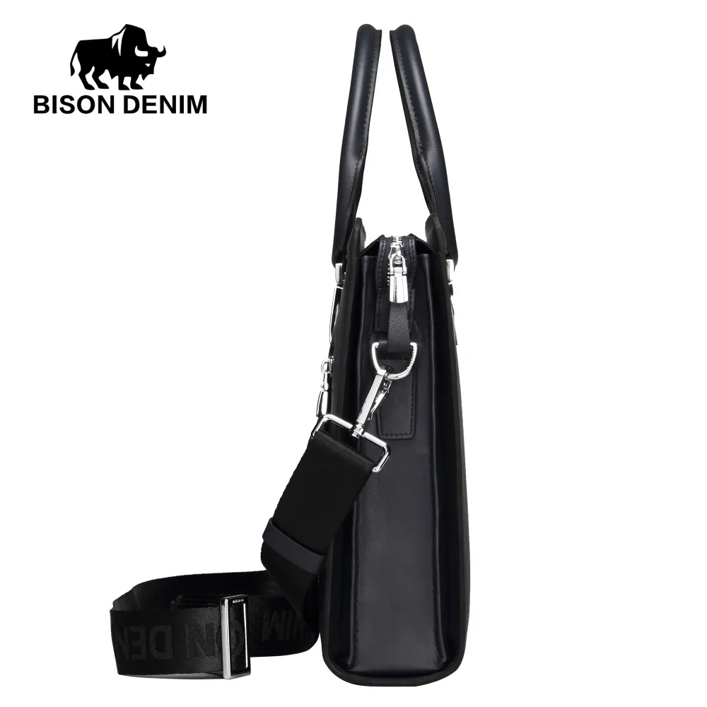 Kaufen Billig Bison Denim Echtem Leder Garantieren Aktentasche Business Umhängetasche Für 14 Laptop Tablet leder aktentaschen männer taschen N2317 Preise Online