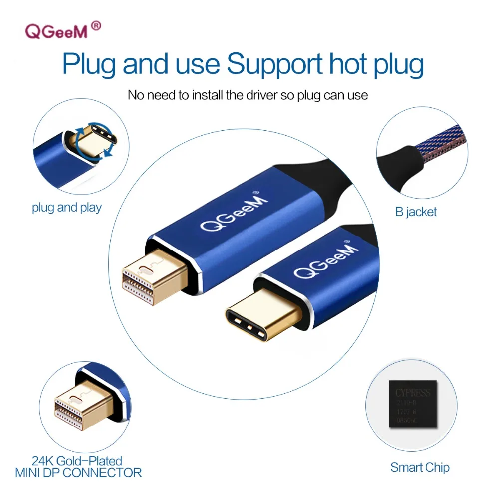 Kaufen Billig QGeeM USB Typ C 3,1 zu Mini DisplayPort Kabel DP 4 K 60 HZ HDTV Konverter Adapter für Macbook HuaWei mate 10 Sansung S8 Preise Online.