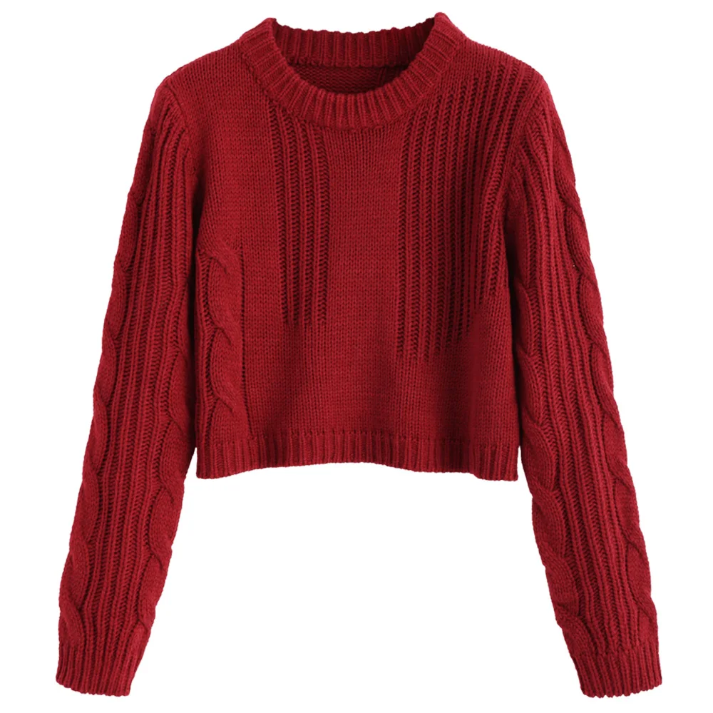 Günstige Kaufen AZULINA Kabel Stricken Pullover O Neck Langarm Candy Farbe Panel Crop Top Frauen Pullover Pullover Herbst Winter Mädchen Tops jumper Preise Online