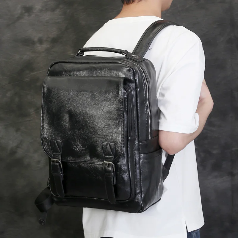 Günstige Kaufen VIKUNJA POLO Marke Stilvolle Hohe Qualität Mann Leder Rucksack Reise Mann Tasche Schwarz Schule Rucksack Tasche Business Laptop Rucksack Preise Online