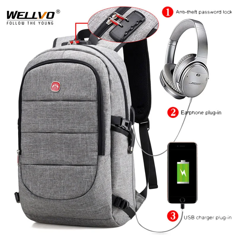 Kaufen Günstig Externe USB Ladung Rucksack Männer Anti Theft Lock Laptop Tasche Große Schule Taschen Männlichen Reise Rucksäcke Mit Kopfhörer Stecker XA2199C Preise Online