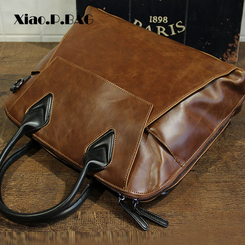 Kaufen Günstig Xiao. P Tasche Retro herren Aktentasche Crazy Horse PU Leder 13 zoll Laptop Handtasche Business Männer Messenger Taschen Preise Online.