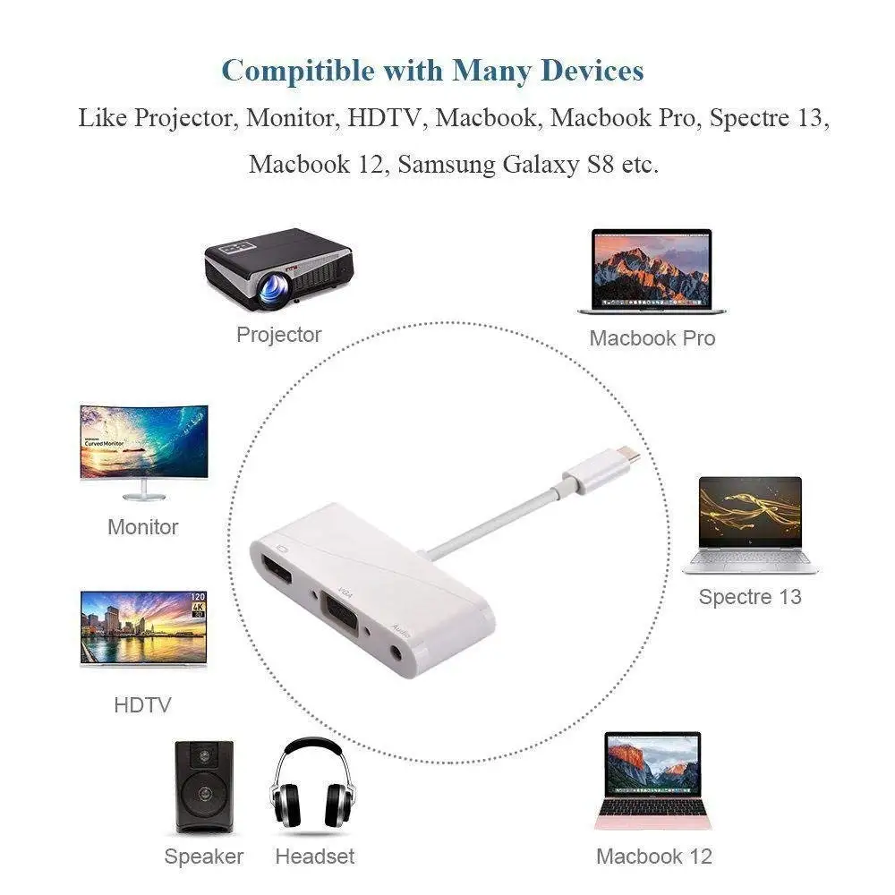 Kaufen Günstig USB C Zu HDMI VGA Adapter, USB C 3,1 zu HDMI DVI VGA USB 3.0 HUB Multiport Adapter für MacBook MacBook Pro Chromebook Pixel zu Preise Online.